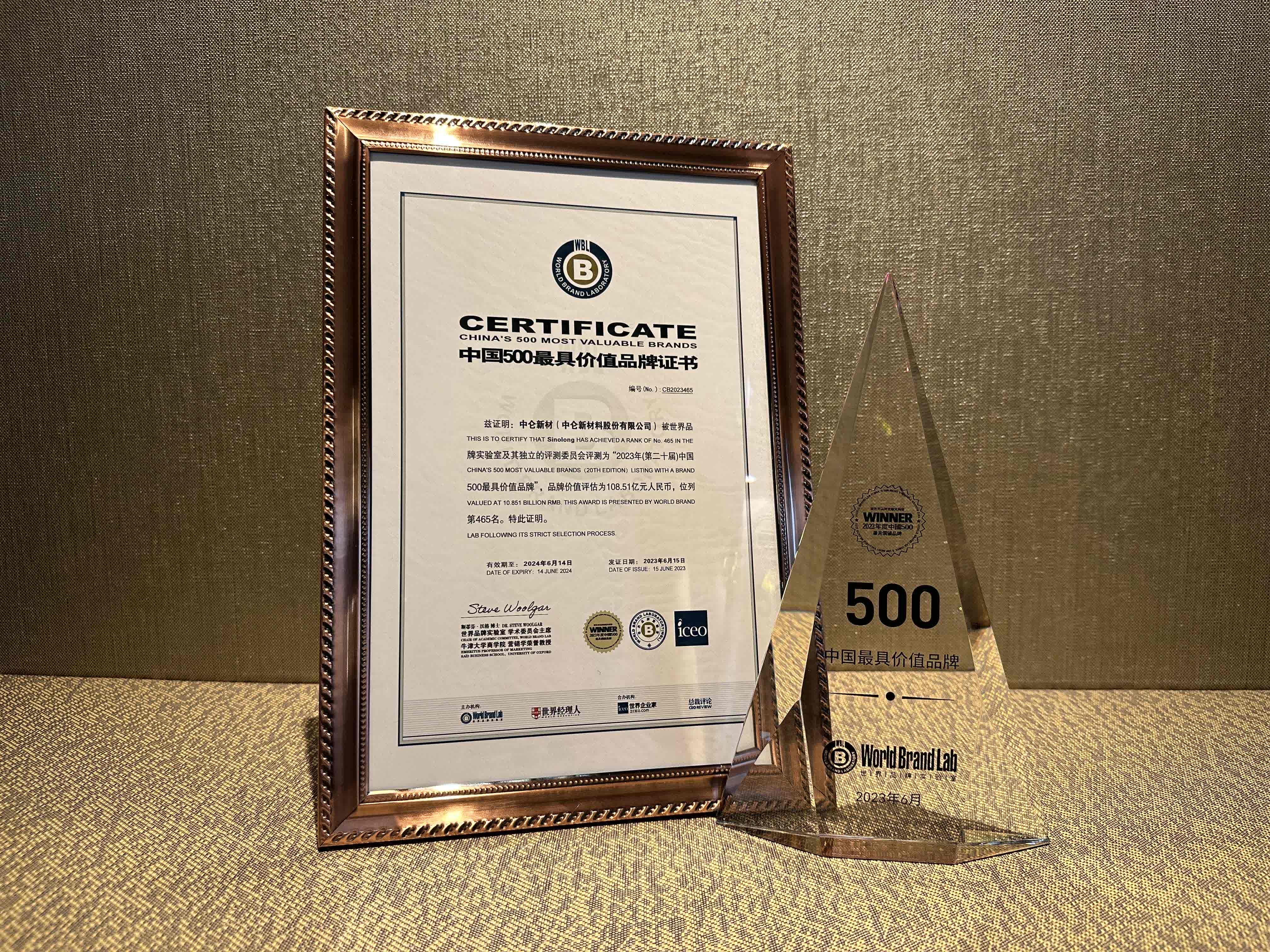 日前,世界品牌實驗室在北京發布了2023年《中國500最具價值品牌》分析報告。在這份基于財務數據、品牌強度和消費者行為分析的年度報告中,中侖新材品牌價值達到108.51億元,再度蟬聯中國最具價值高性能膜材料品牌。
